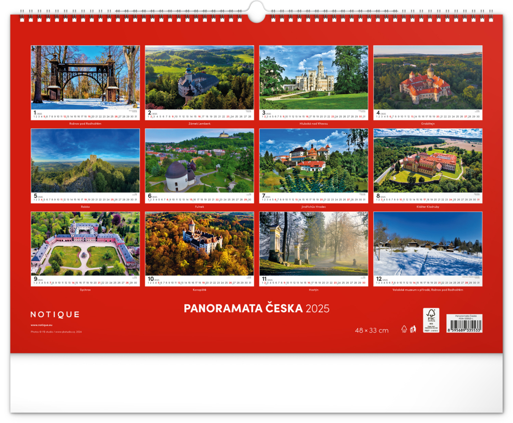 NOTIQUE Nástěnný kalendář Panoramata Česka 2025, 48 x 33 cm