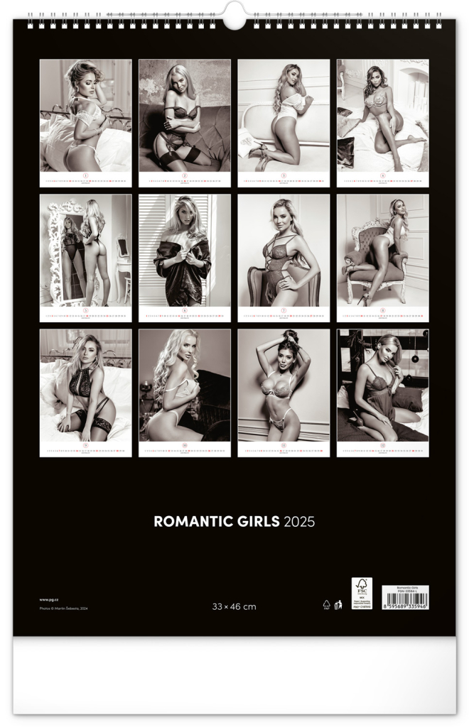Nástěnný kalendář Romantic Girls – Martin Šebesta 2025, 33 x 46 cm