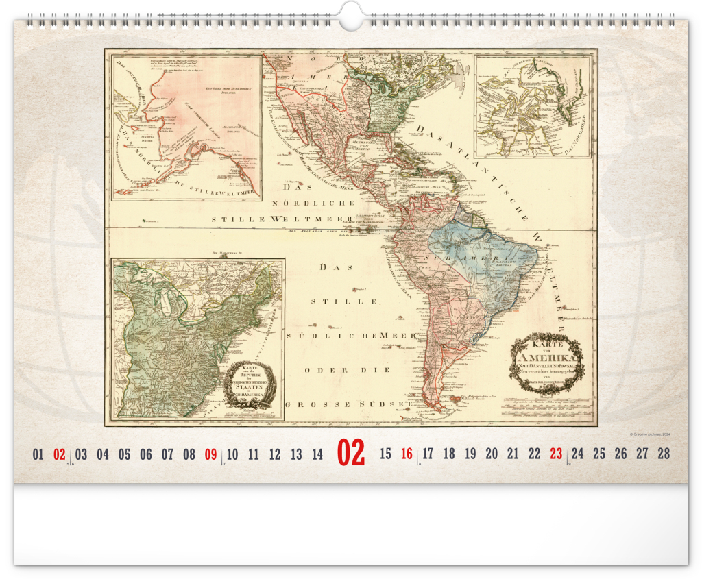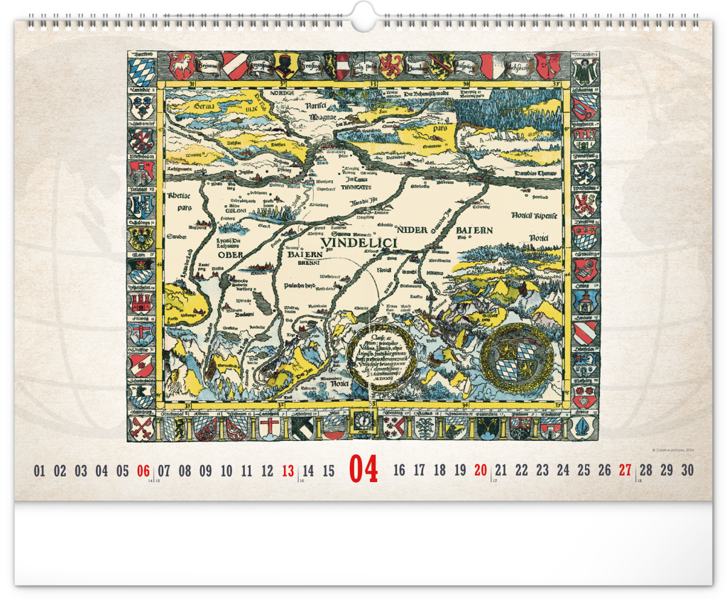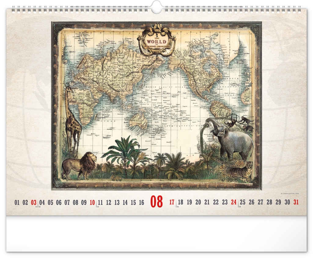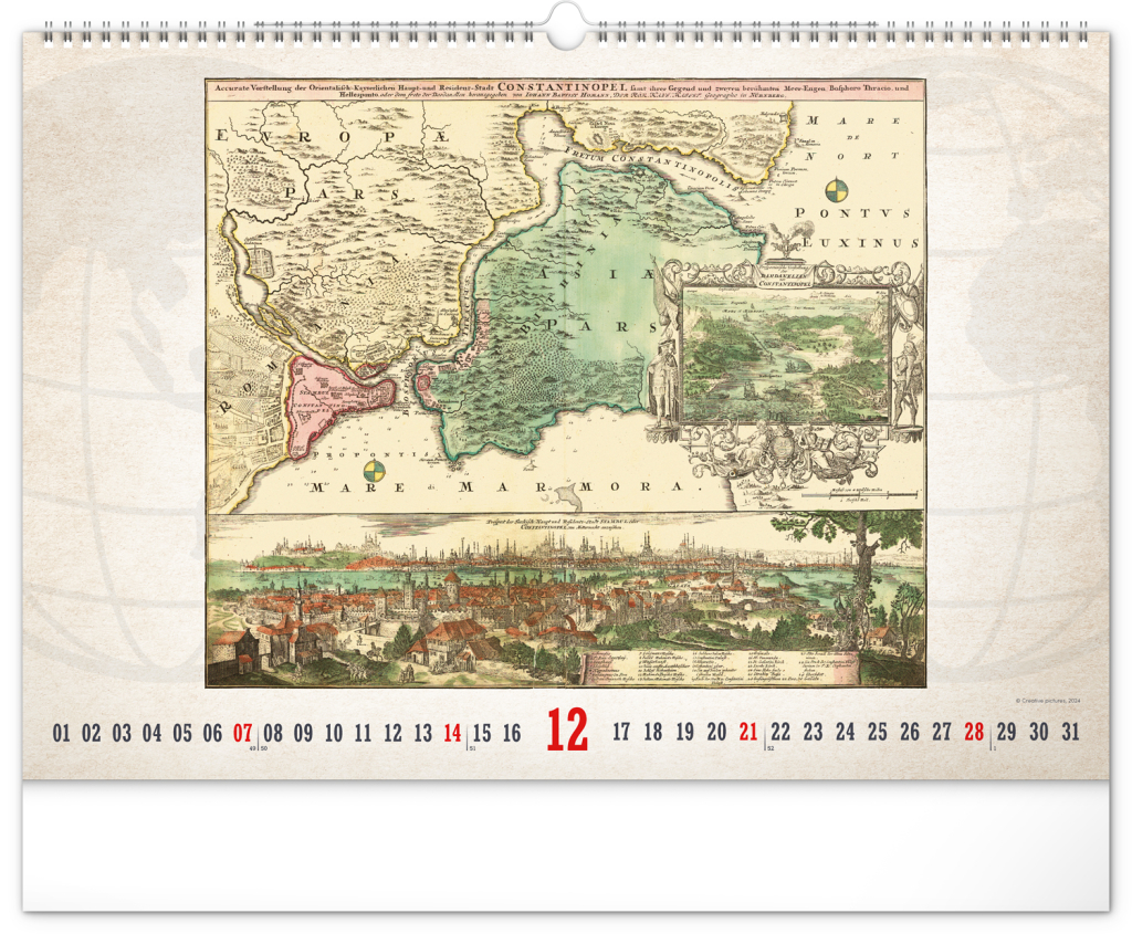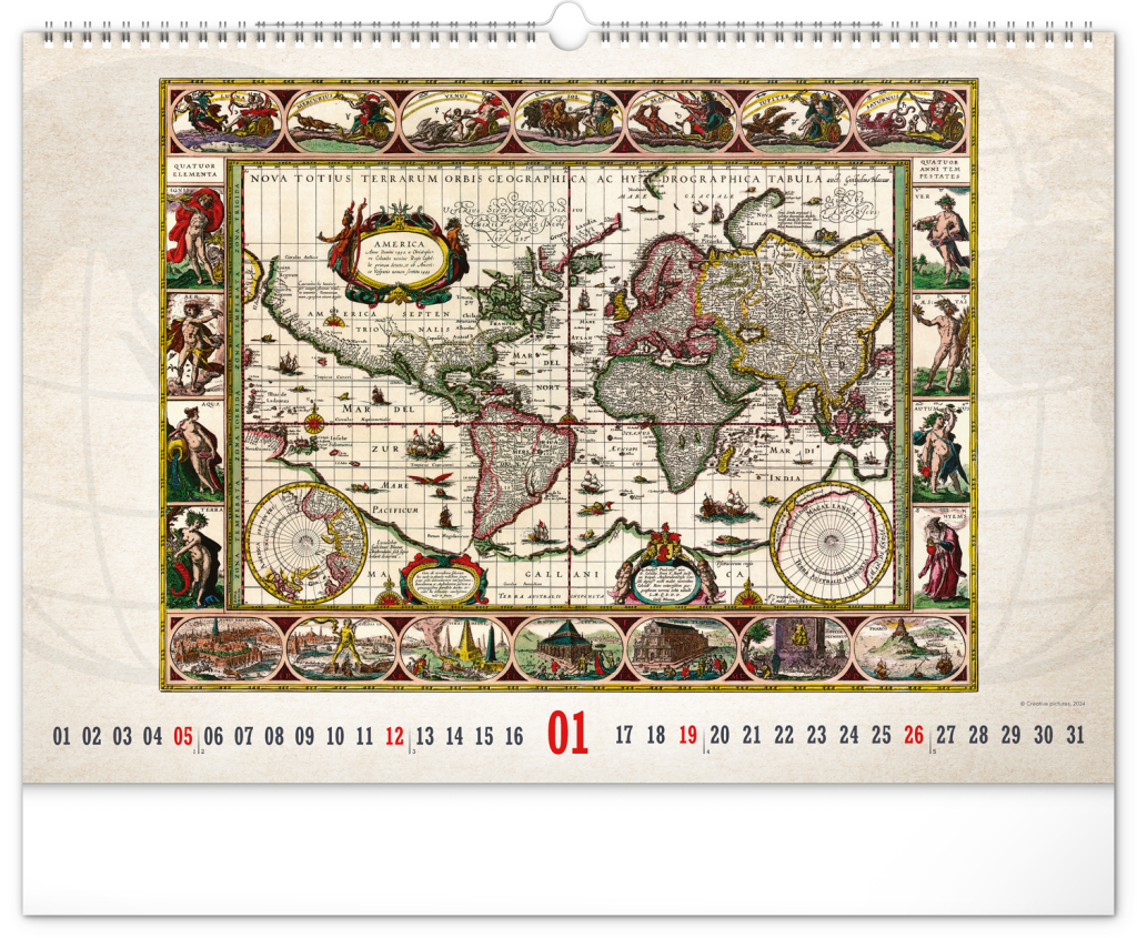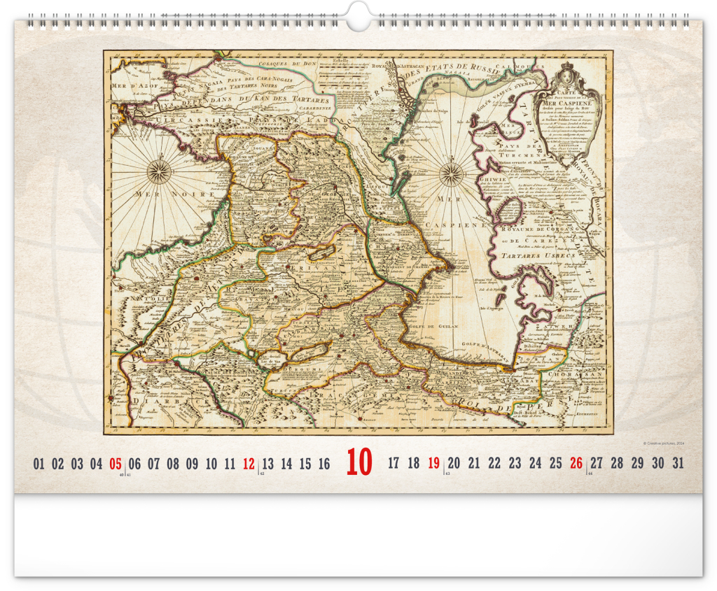 NOTIQUE Nástěnný kalendář Staré mapy 2025, 48 x 33 cm