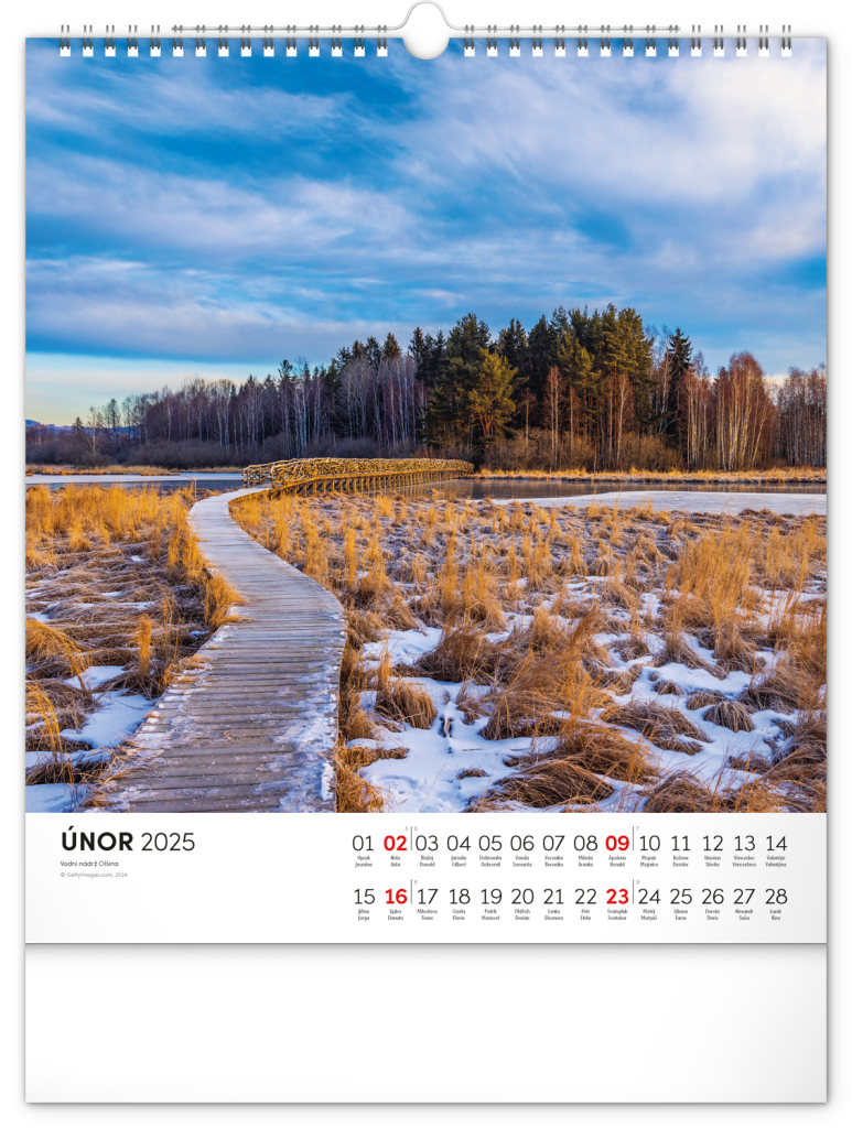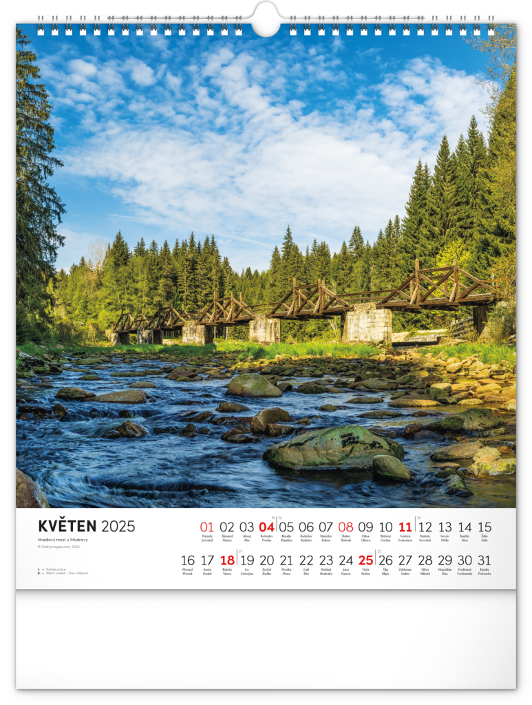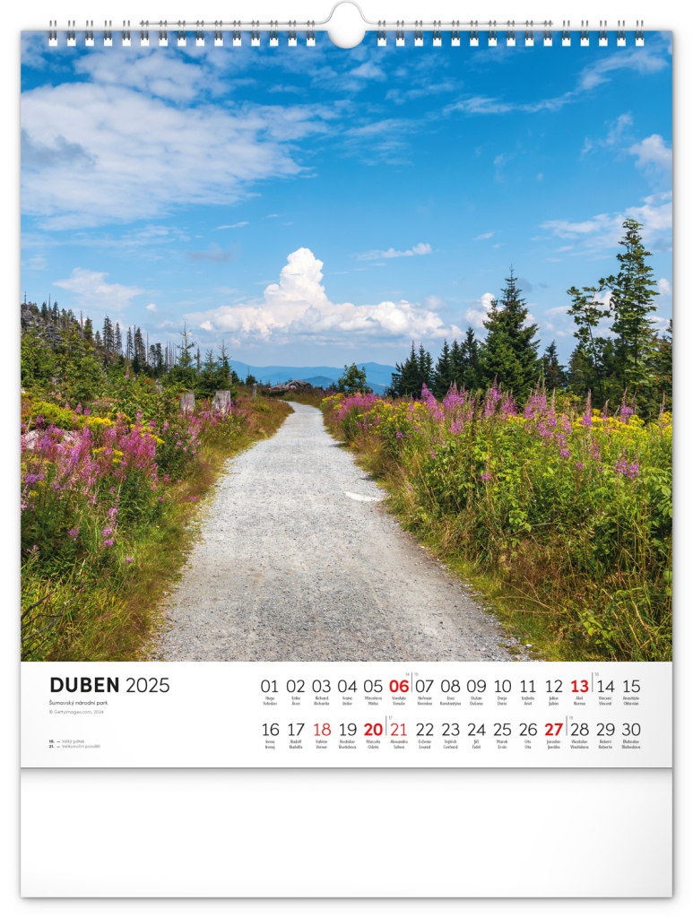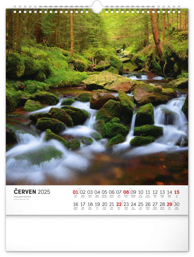 Dvanáct působivých snímků zachycujících krásu Šumavy ve čtvercovém formátu. Fotografie jsou doplněny jednoduchým kalendáriem na bílém pozadí.