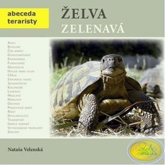 Autorka, paní Nataša Velenská, naše přední odbornice na chov želv, již řadu let působí v pražské ZOO. V knize obsáhle popisuje vše co se týká chovu a odchovu Testudo hermanni - želvy zelenavé. Pro začínající teraristy je kniha absolutním základem. Ale mnoho zajímavých a poučných poznatků zde naleznou i zkušení chovatelé.