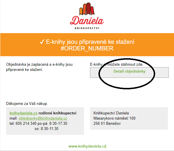 Po uhrazení objednávky se Vám zpřístupní možnost stažení zakoupených elektronických knih. Na email uvedený v objednávce přijde zpráva s názvem předmětu Máme pro Vás podrobnosti o objednávce č. ....