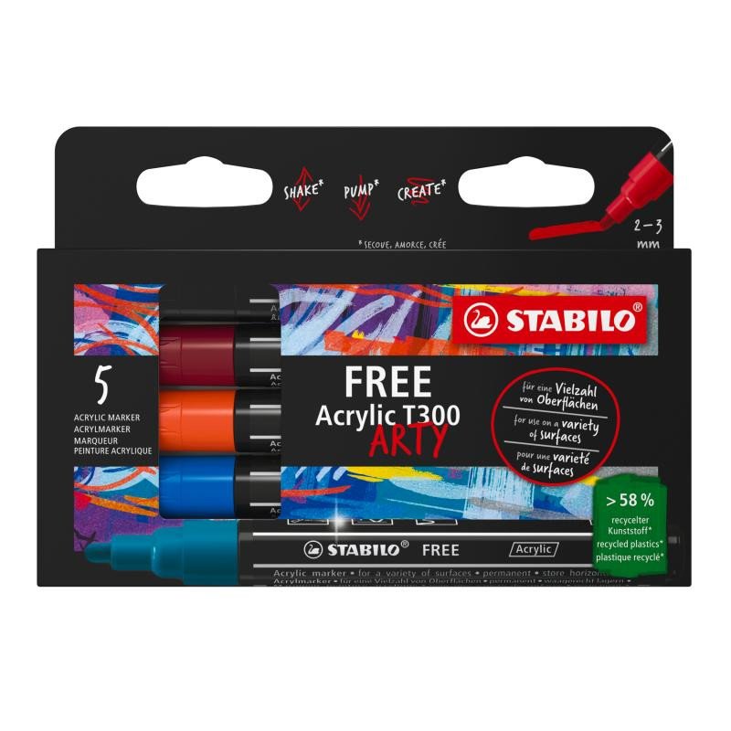 Akrylový popisovač STABILO FREE Acrylic - kulatý hrot 2-3 mm - sada Urban 5 ks