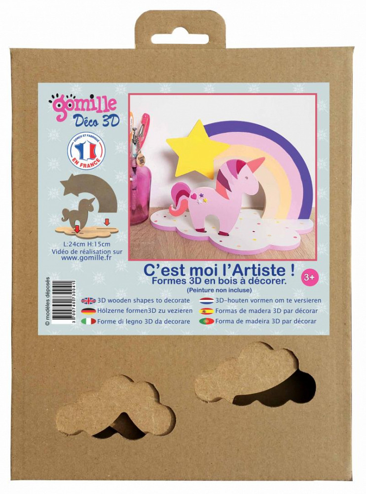 Kreativní dřevěná sada k dotvoření. Souprava obsahuje dva tvary k dotvoření a praktický podstavec, díky kterému je možné sestavit hezkou interiérovou dekoraci do pokojíčku. K dotvoření doporučujeme akrylové nebo temperové barvy, na detaily akrylové fixy a efektové diamantové barvy. Tip na kreativní dárek.