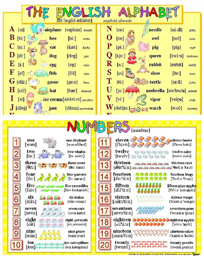 Anglická abeceda / Anglické číslovky (1-20) (karta)