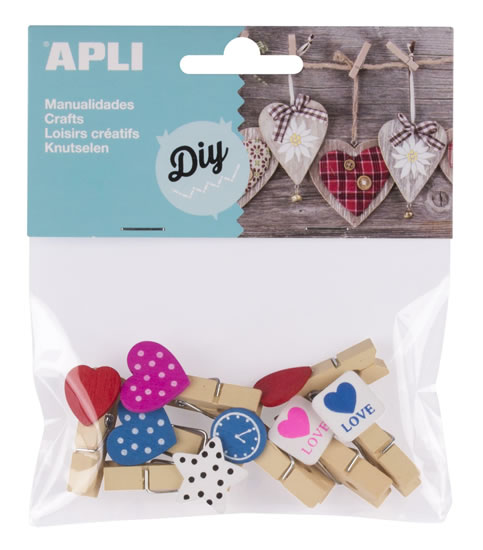 APLI dřevěné kolíčky s ozdobami - mix druhů, barev 8 ks