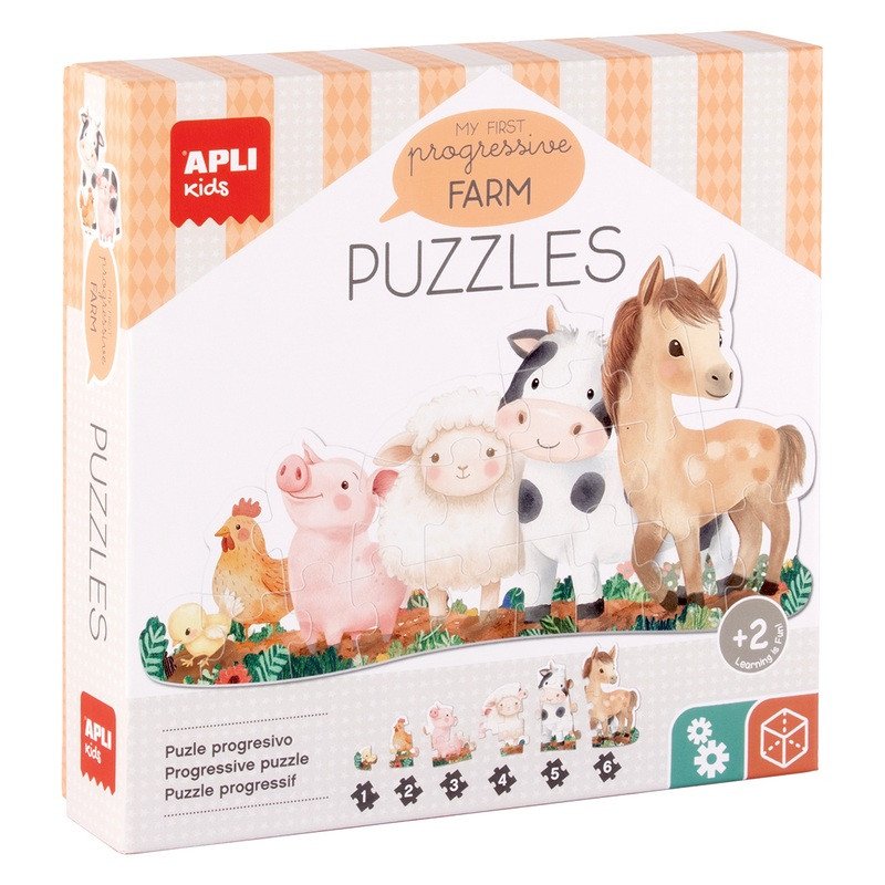 Objevte kouzlo skládání puzzlí, které rostou spolu s dovednostmi vašeho dítka. Sada obsahuje 6 krásně ilustrovaných zvířátek z farmy zobrazených vedle sebe, u kterých se postupně navyšuje počet skládacích dílků. Velký a bezpečný tvar, který se snadno drží i malým ručičkám. Podpora jemné motoriky, trpělivosti a logického myšlení malých dětí. Elegantní balení, skvělé jako dárek pro zvídavé děti.