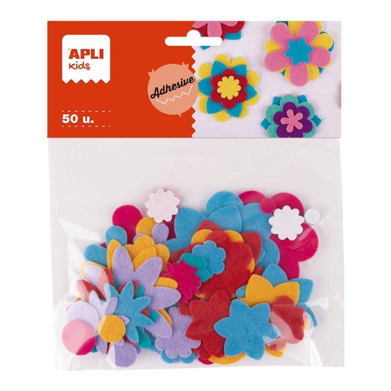 Apli filcové květin 50 ks samolepící - mix velikostí a barev