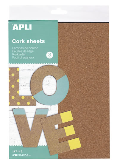 Korkové pláty pro dekorování předmětů, výtvarné a pedagogické aktivity. K dekoraci pevných povrchů i v kombinaci s jiným výtvarným materiálem. Zdobit lze např. obaly deníků, rámečky, květináče apod. Korkový design dodává předmětům krásný přírodní vzhled. Pláty je možné stříhat, trhat, lepit, malovat fixy a barvami. Rozměr: 210 x 297 x 2 mm. Balení: 3 ks.