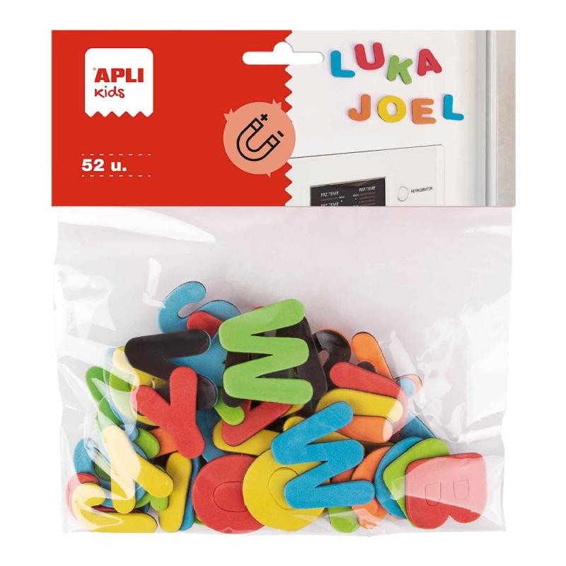 Apli pěnovka tvarová - písmena, 52 ks, magnetická, mix velikostí a barev