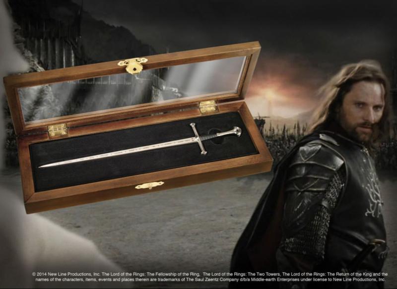 Zmenšená replika meče Andurilu, meče krále Aragorna, z filmového zpracování Tolkienova Pána prstenů. Tento meč byl znovu zhotoven z úlomků Elendilova Narsilu.