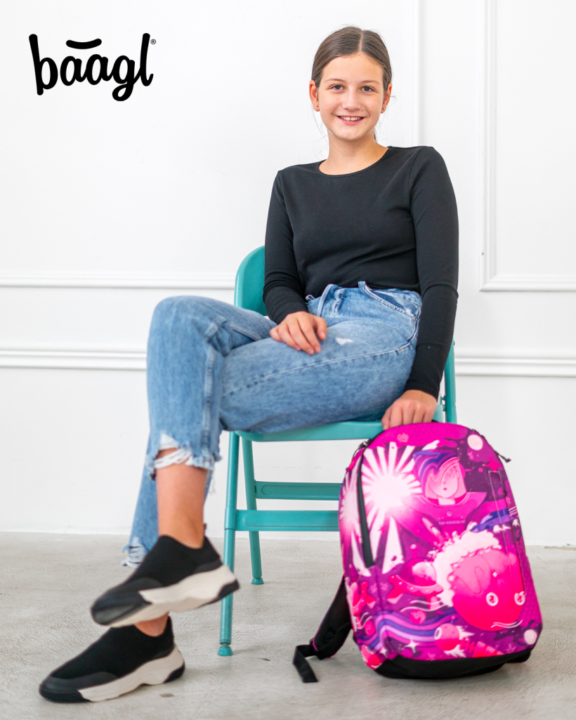 Designový batoh ze 100% recyklovaného voděodolného materiálu. Ergonomicky tvarovaná záda s nastavytelnými ramenními popruhy. Vnitřní kapsa na 15\" notebook. Přední a horní praktické kapsy na zip vhodné na uschování drobností. Velmi nízká hmotnost batohu 500 g. Objem 23 l. Nosnost až 7 kg. Batohy z řady eARTh byly testovány a certifikovány v akreditované zkušební laboratoři. Vesmír je nekonečný, stejně jako naše představivost. Nech se jím unášet, inspirovat a motivovat. Motiv vesmíru v sobě nese poselství kolekce eARTh, která stojí na hodnotách udržitelnosti, umění a kvality, a proto kombinuje 100% recyklované materiály s designy mladých českých umělců. Použití odlehčených materiálů pomohlo zredukovat váhu batohu pod 500g a zařadit jej tak mezi nejlehčí BAAGL batohy.