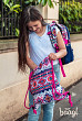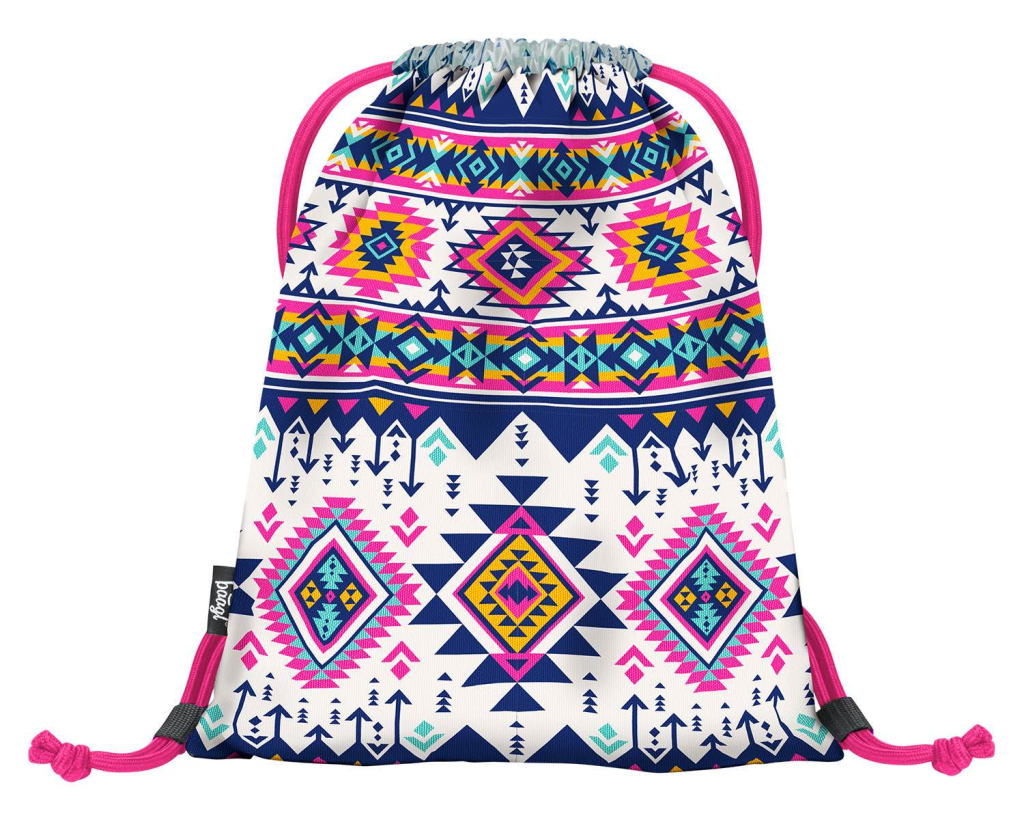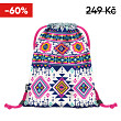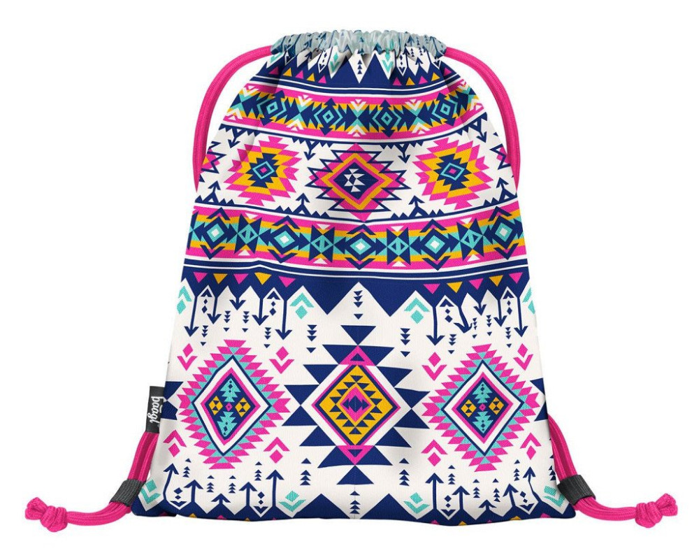 Sáček na cvičky nebo přezůvky z pevného omyvatelného materiálu. Zdrhování pomocí pevných tkanic, které zároveň umožňují nošení na zádech.