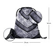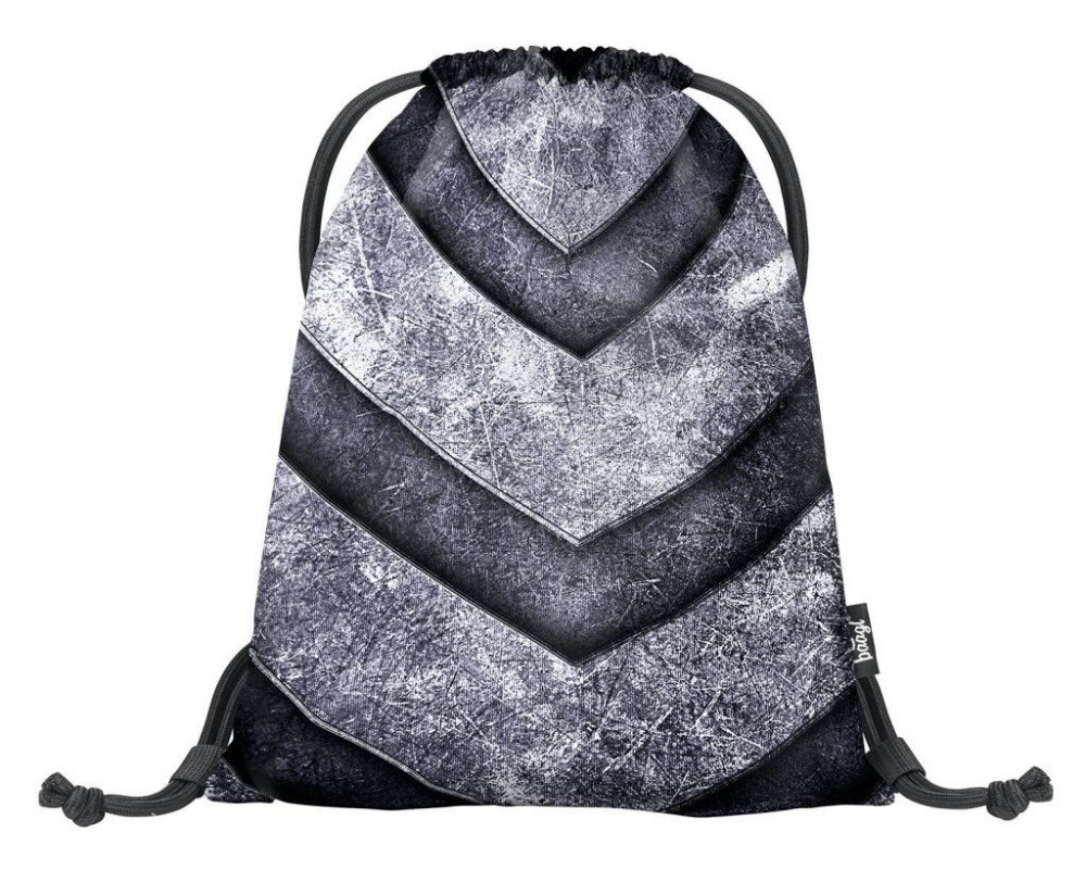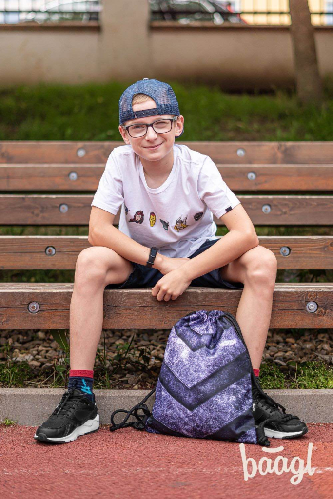 Sáček na cvičky nebo přezůvky z pevného omyvatelného materiálu. Zdrhování pomocí pevných tkanic, které zároveň umožňují nošení na zádech.