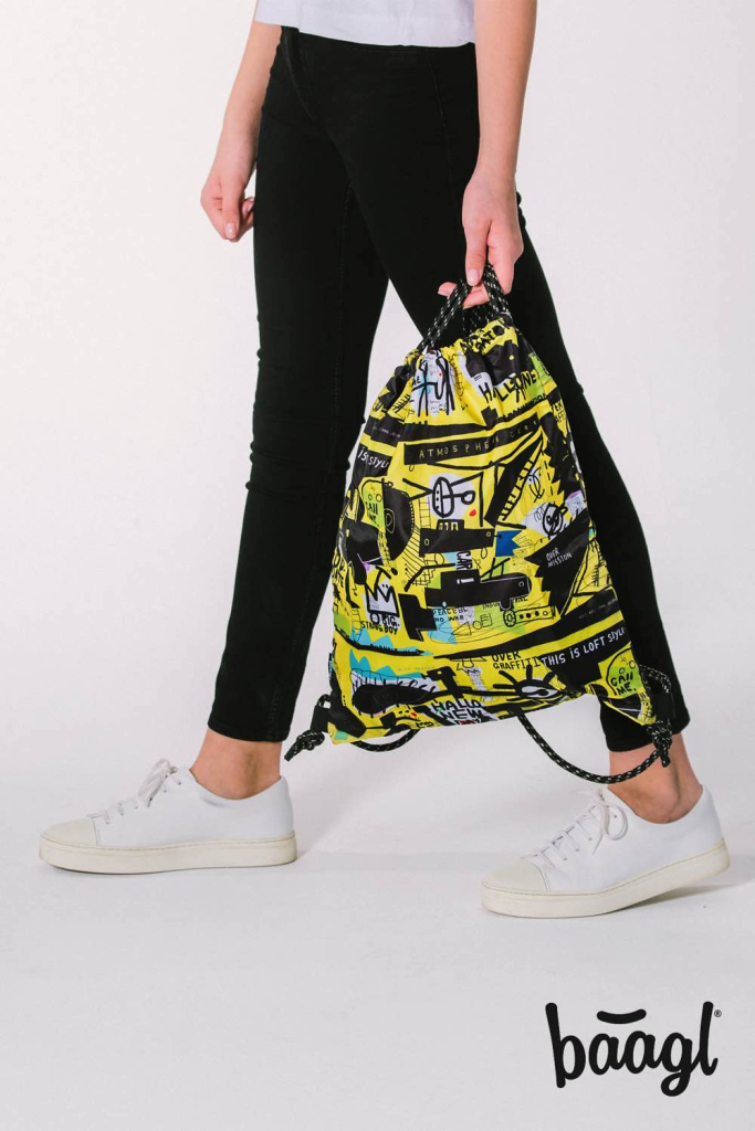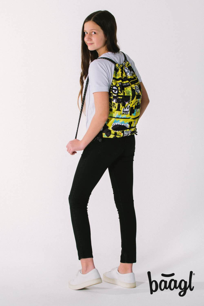 Výrazně žlutý sáček z řady Skate Steet art doplněný o svítící logo BAAGL.