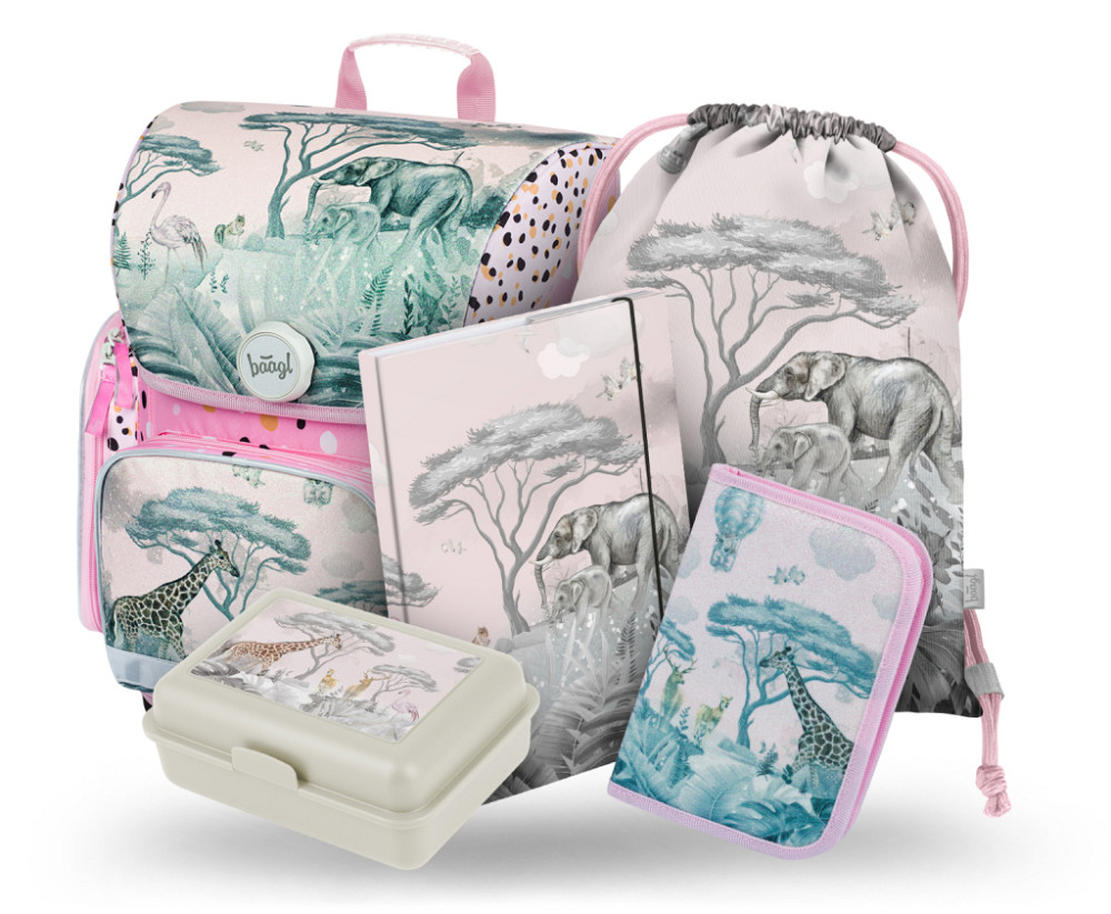 BAAGL 5 SET Ergo Safari: aktovka, penál, sáček, desky, box