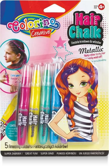 Třpytivé pero obarví pramínky vlasů. Na vybraný pramen suchých vlasů naneste barvu a pomocí malého hřebínku rozčešte. Barvu pak snadno smyjete pomocí vlasového šamponu. Balení obsahuje 5 metalických barev (5x 6 g) a minihřebínek.