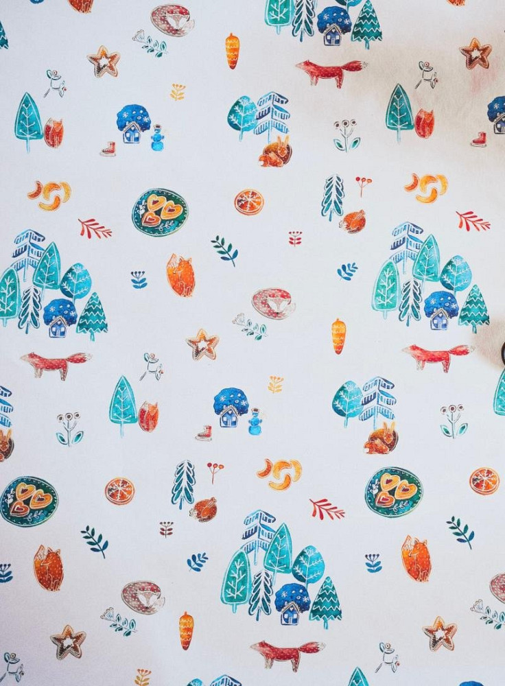 Be Nice EKO Rodinný vánoční balicí papír je inspirovaný českou tradicí, dětskou láskou ke zvířátkům a kouzelným adventním obdobím. Papíry jsou pevné a s jemnou mřížkou na spodní straně pro snadné nastříhání papíru. Originální motivy vytvořila česká ilustrátorka Bára z Nikolajky.