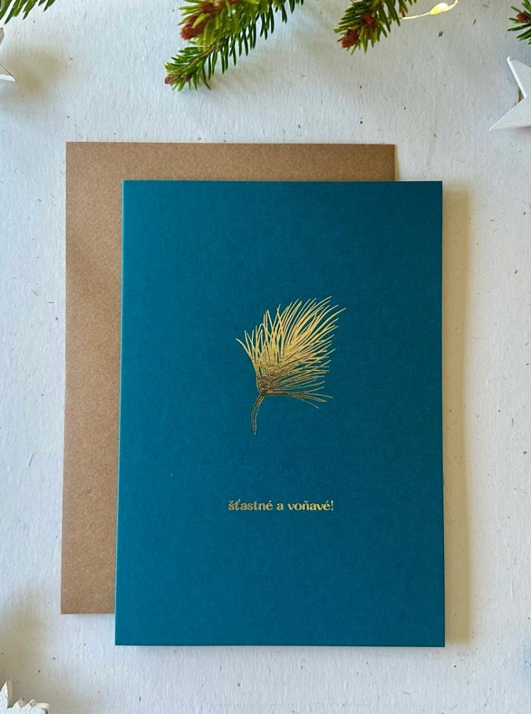 Be Nice EKO Přání vánoční V jehličí - petrolejové se zlatoražbou