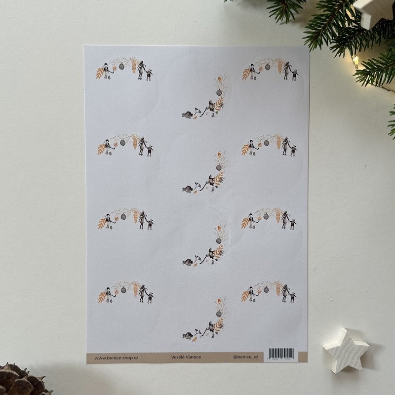 Be Nice Vánoční samolepicí jmenovky - Přírodní