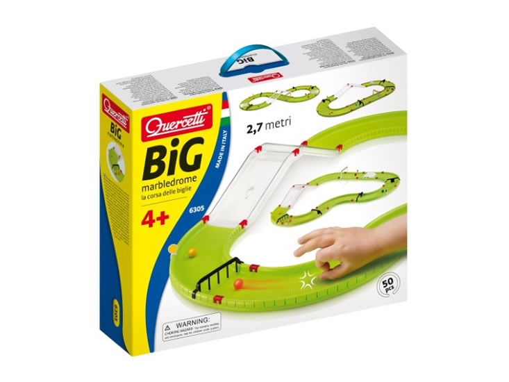 Díky nové stavebnici BiG si můžete snadno postavit úžasné kuličkové okruhy dlouhé až 2,7 m a uspořádat doma napínavé závody, jaké byste jinak mohli zažít jen na pláži nebo na hřišti. Stačí jen cvrnkat prsty do kuliček… a už se kutálejí! Můžete soupeřit s časem nebo vyzvat k vzrušujícímu závodu kamarády a… ať vyhraje ten nejlepší! Stavebnice BiG byla pečlivě navržena tak, aby se jednotlivé díly snadno skládaly i rozebíraly. Speciálně vroubkovaný povrch dráhy snižuje rychlost kuliček a umožní jim zůstat stát na místě, kam se dokutálely; po dráze lze navíc rozestavit i různé překážky a pasti. BiG není jen dynamická a zábavná hra – tato stavebnice zároveň umožňuje přirozeně pozorovat a ověřovat si základní fyzikální principy, což dlouhé hodiny bezpečného hraní obohacuje o významný vzdělávací rozměr.