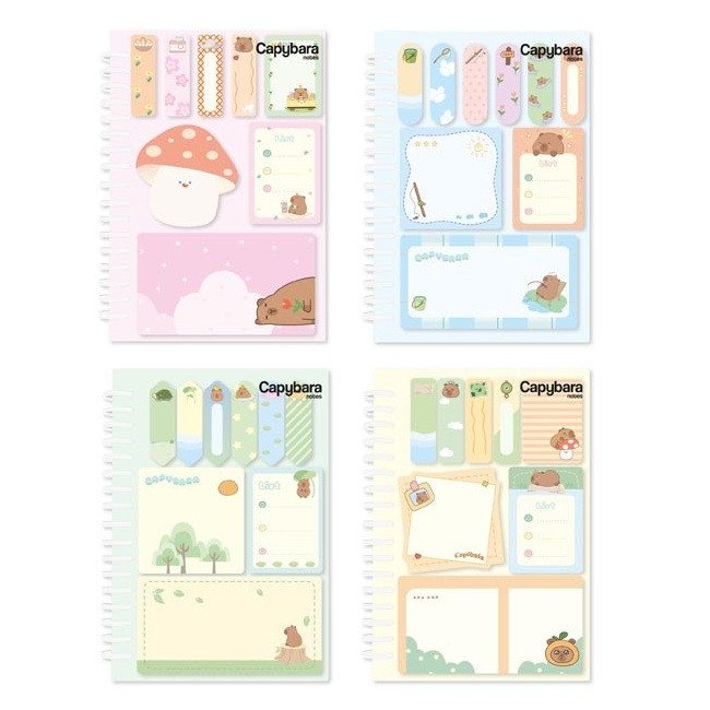 Bloček samolepicí capybara se spirálou set - mix motivů