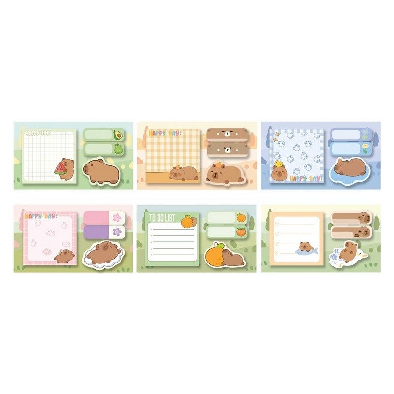 Samolepicí set bločků s kapybarami potěší každého milovníka roztomilých drobností i praktického plánování. Různé tvary a velikosti se skvěle hodí na poznámky, úkoly nebo milé vzkazy pro vaše blízké.