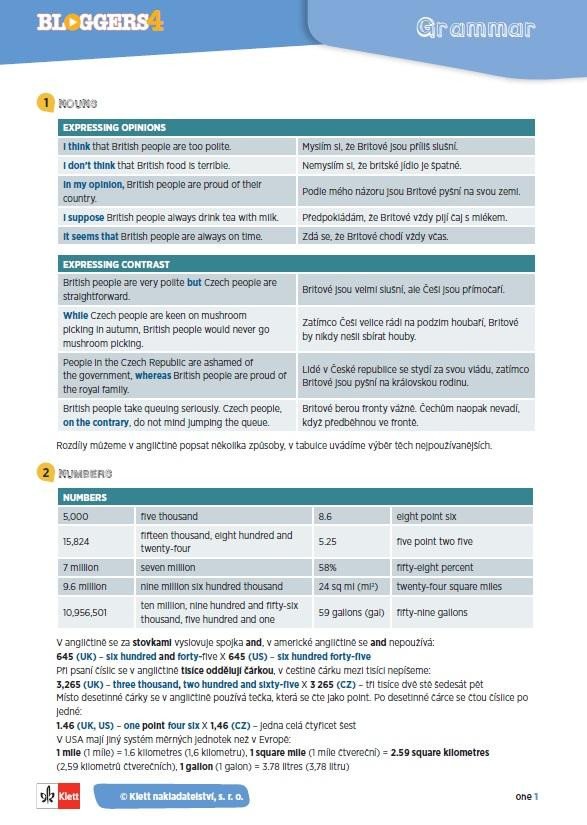 Bloggers 4 (A2.2) – gramatický přehled (leporelo)