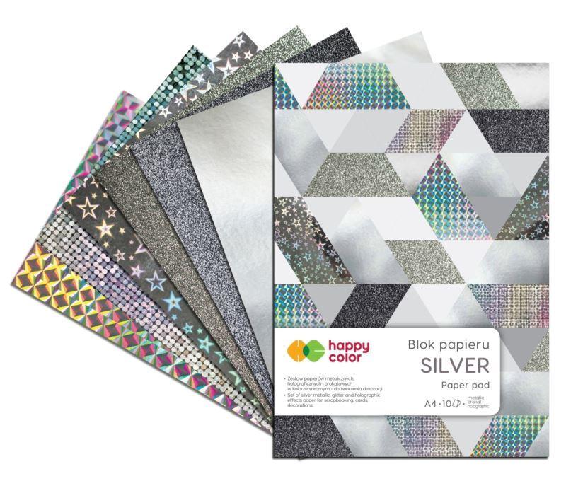 Blok se stříbrnými papíry je jako stvořený pro výrobu dekorací. V bloku najdete papíry s různými efekty - holografické (hvězdy, čtverečky, tečky), metalické zrcadlové, třpytivé.