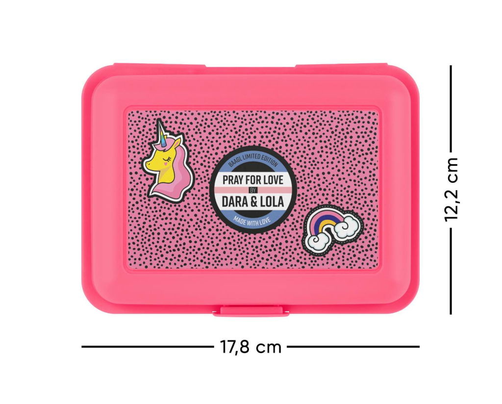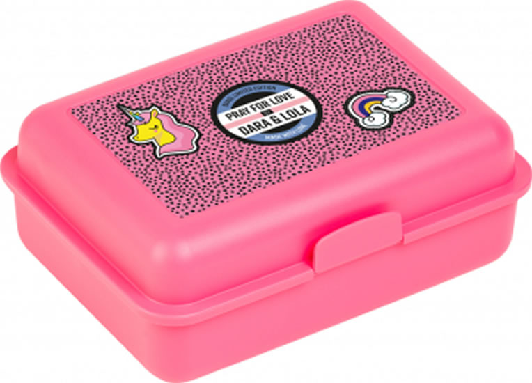 • Praktický plastový box na svačinu s motivem navrženým dcerou Dary Rolins a uzavíráním na jeden zámek