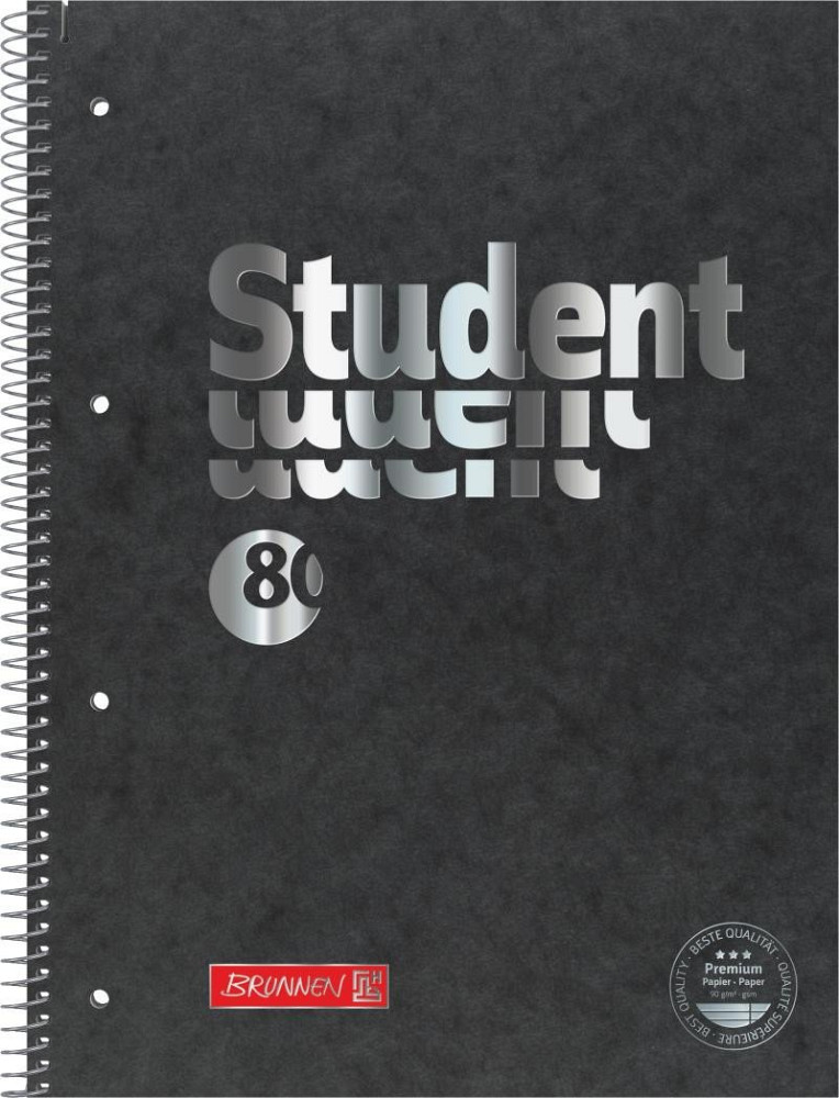 Kroužkový sešit obsahuje 80 listů, 160 stran, kvalitní papír o gramáži 90 g/m2, který se nepropisuje. Mikroperforace pro snadné vytržení listu, děrovaný pro možné založení do šanonu. Desky jsou z pevné lepenky o gramáži 335 g/m2. Vyrobeno v Německu.