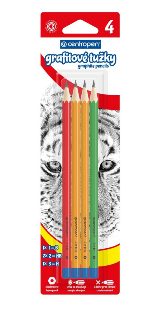 Školní grafitové tužky dřevěné, tvrdosti - 1=B, 2=HB, 3=H.