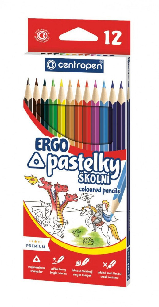 Trojúhelníkové školní pastelky • souprava 12 barev • ERGO držení