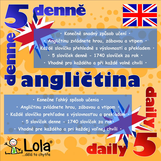 5 denně - nikdo to za Vás neudělá. Začněte kdykoli, nejlépe dnes - každý den máte před sebou 5 vybraných slovíček od těch nejjednodušších až po ta pokročilá. Nečekejte na Nový rok, taková předsevzetí nemají většinou dlouhého trvání - začněte prvního hned příští měsíc. Naučte se připravenou „pětku“ a přitom si zopakujte pětice slovíček z předchozích čtyř dní. Celkem tak budete procvičovat 25 slovíček každý den a každé z těchto slovíček pět po sobě jdoucích dní, což je dostatečné k tomu, abyste si je zapamatovali jednou provždy. Pro každý měsíc je pro Vás připraveno 29 takových pětic (poslední den si můžete oddechnout) a prostor pro zaznamenání slovíček, která Vám v tom měsíci dělala potíže. Pečlivě si je tam zapište a vždy se k nim vracejte, dokud je také nezvládnete také.