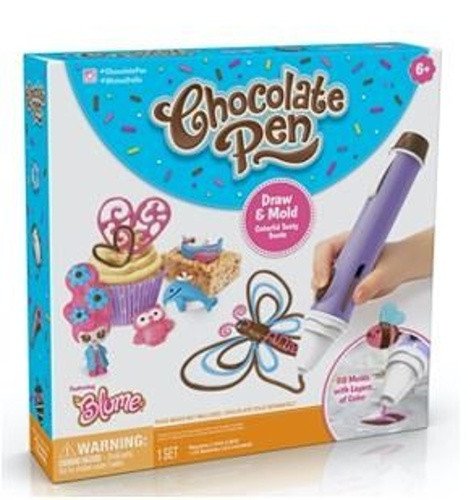 S novinkou ČokoPero vytvořte unikátním způsobem lahodné dekorace ještě lépe než kdy dříve! Nový design je vhodný pro děti, po naplnění pera čokoládou a pouhým stisknutím tlačítka můžete psát slova, kreslit jedinečné kresby nebo použít formičky k vytváření duhy, srdíček a dalších zábavných tvarů, včetně bonusových formiček inspirovaných panenkami Blume. Dětští kuchaři si zamilují přidání čokoládových detailů na ovoce, sušenky, košíčky, muffiny nebo cokoli, po čem jejich sladké srdce touží! Vaše kutilské výtvory během několika minut magicky ztuhnou a budou perfektním dárkem pro vaše přátele a rodinu.