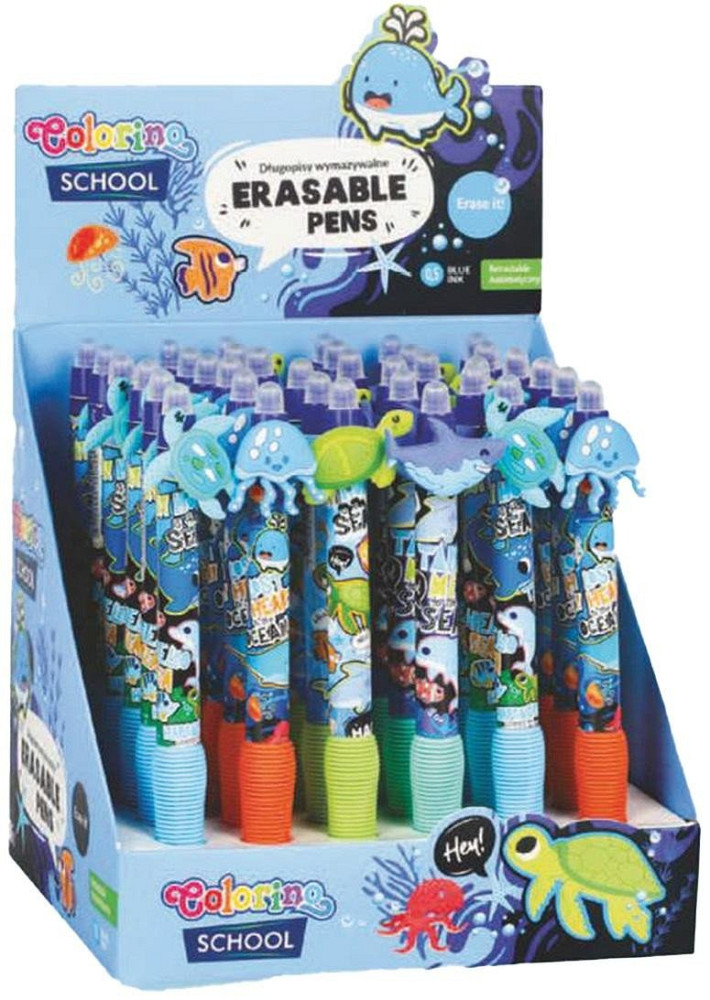 Kolekce gumovatelných per s barevným tělem a roztomilými motivy mořských zvířátek. Příjemný pogumovaný grip zajistí pohodlný úchop každému školákovi. • šířka stopy: 0,5 mm • barva náplně: modrá • stiskací mechanika v klipu • 4 motivy mořského světa • pogumovaný grip