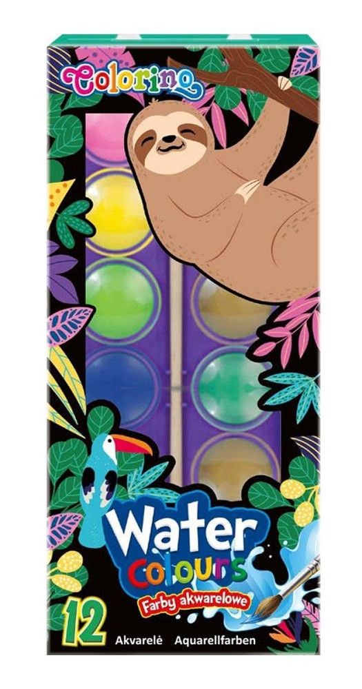 Vodové barvy s vysokým obsahem pigmentu. Nepraskají ani při opakovaném používání. Praktické uzavíratelné pouzdro s přírodním štětcem. •průměr barvy: 25 mm •12 barev •netoxické •přírodní, kulatý štětec •syté barvy