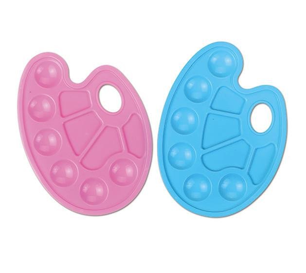Barevná malířská paleta s 6-ti miskami pro barvy a 4 miskami pro míchání barev. Vyrobená z odolného a pružného plastu. Rozměry palety: 23 cm (širší strana) x 17 cm (užší strana). Dodávaná v mixu 2 barev. Barvu zasíláme náhodným výběrem, motiv nelze vybrat.
