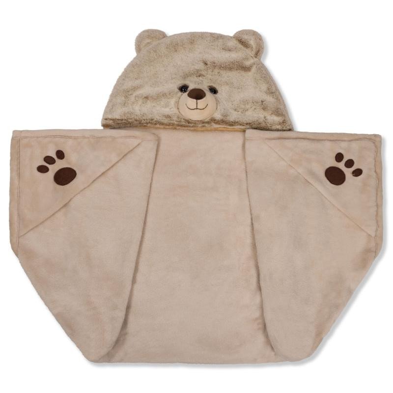 Cozy Noxxiez hřejivá deka s kapucí se zvířátkem a tlapkovými kapsami - Medvěd