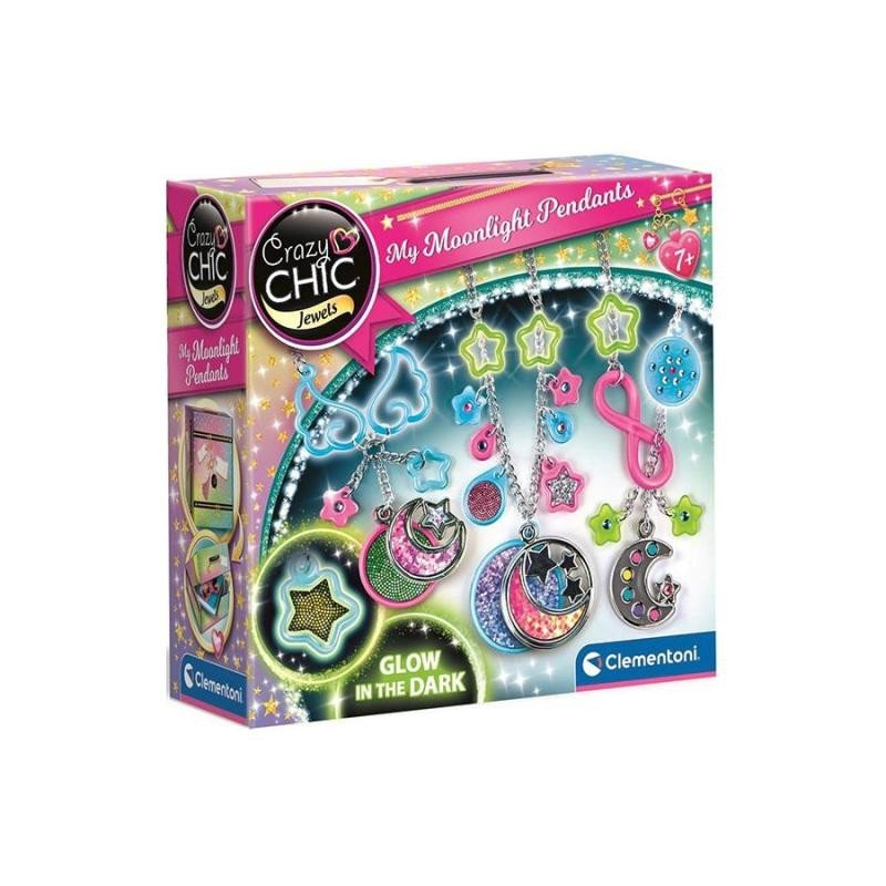 Exkluzivní sada pro vytváření náramků a náhrdelníků s fantastickými kouzly Crazy Stars a Crazy Moon, které svítí ve tmě! Sada obsahuje: hliníkové náhrdelníky a prsteny, přívěsky z kovového a barevného plastu ve tvaru měsíce a hvězd, holografické nálepky a držák na doplňky. Zábavná a kreativní hračka pro vytváření trendových doplňků! Rozměry: 18 x 18 x 6 cm. Věk: 7+