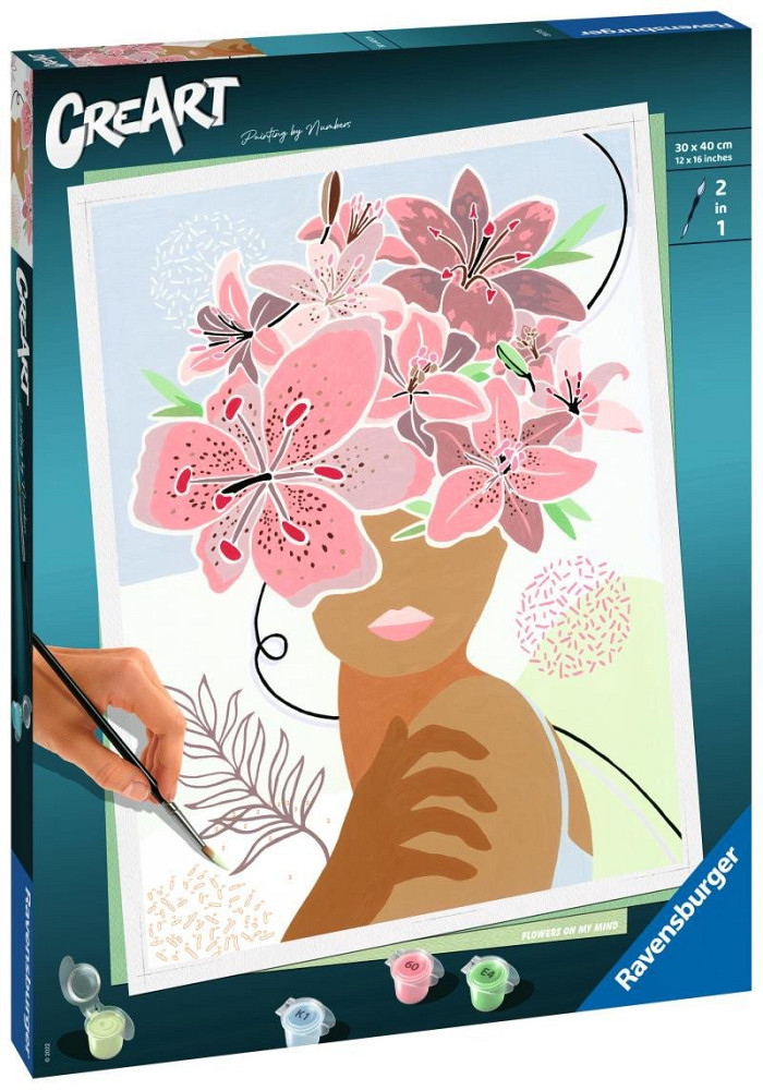 CreArt - to je kreativní zábava doslova pro každého. Staňte se na chvíli profesionálním malířem a namalujte si svůj vlastní obraz. Postupně vybarvujte jednotlivé plochy podle návodu (každé číslo na plátně odpovídá jedné konkrétní barvě) a dopřejte si radost z tvůrčí práce, u které se zabavíte na dlouhé hodiny. Malování je skvělá činnost, která nejen baví, ale také procvičuje zručnost, zlepšuje koncentraci a zaručuje spokojenost a pocit hrdosti všem umělcům. Set obsahuje vše, co potřebujete k malování: vysoce kvalitní, pevný kartonový podklad s obrazovou předlohou s očíslovanými plochami, sadu akrylových barev, štětec, kartonový stojánek pro kelímky s barvami, rámeček. Vykreslené plochy vytváří profesionálně vypadající umělecké dílo. Jakmile obraz dokončíte, nechte ho zaschnout a zarámujte ho do rámečku, který je součástí balení. Malování nikdy nebylo tak jednoduché.