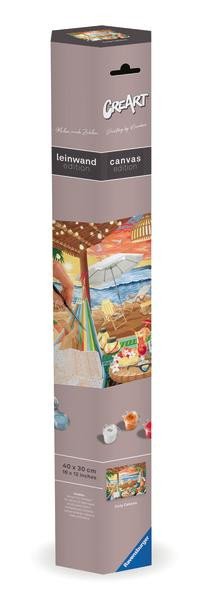 CreArt - to je kreativní zábava doslova pro každého. Staňte se na chvíli profesionálním malířem a namalujte si svůj vlastní obraz na kvalitní plátno o rozměrech 30 cm x 40 cm. Tento pestrobarevný obraz pohodové atmosféry na pláži ozdobí každou zeď. Postupně vybarvujte jednotlivé plochy podle návodu (každé číslo na plátně odpovídá jedné konkrétní barvě) a dopřejte si radost z tvůrčí práce, u které se zabavíte na dlouhé hodiny. Malování je skvělá činnost, která nejen baví, ale také procvičuje zručnost, zlepšuje koncentraci a zaručuje spokojenost a pocit hrdosti všem umělcům. Set obsahuje vše, co potřebujete k malování: plátno k rozvinutí s obrazovou předlohou s očíslovanými plochami, sadu akrylových barev, štětec, kartonový stojánek pro kelímky s barvami. Vykreslené plochy vytváří profesionálně vypadající umělecké dílo. Jakmile obraz dokončíte, nechte ho důkladně zaschnout. Malování na plátně nikdy nebylo tak jednoduché.