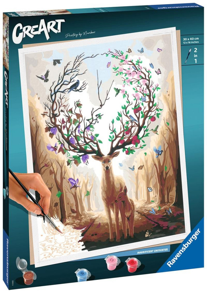 CreArt - to je kreativní zábava doslova pro každého. Staňte se na chvíli profesionálním malířem a namalujte si svůj vlastní obraz. Postupně vybarvujte jednotlivé plochy podle návodu (každé číslo na plátně odpovídá jedné konkrétní barvě) a dopřejte si radost z tvůrčí práce, u které se zabavíte na dlouhé hodiny. Malování je skvělá činnost, která nejen baví, ale také procvičuje zručnost, zlepšuje koncentraci a zaručuje spokojenost a pocit hrdosti všem umělcům. Set obsahuje vše, co potřebujete k malování: vysoce kvalitní, pevný kartonový podklad s obrazovou předlohou s očíslovanými plochami, sadu akrylových barev, štětec, kartonový stojánek pro kelímky s barvami, rámeček. Vykreslené plochy vytváří profesionálně vypadající umělecké dílo. Jakmile obraz dokončíte, nechte ho zaschnout a zarámujte ho do rámečku, který je součástí balení. Malování nikdy nebylo tak jednoduché.