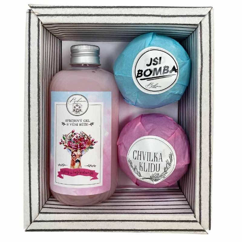 Dárková sada Boho Style (sprchový gel, 2x šumivá pěnivá bomba)