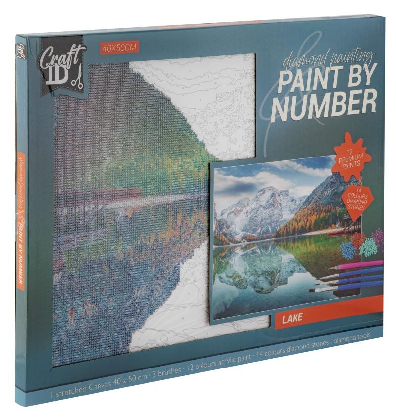 Diamantové malování + malování podle čísel - Jezero 40x50 cm