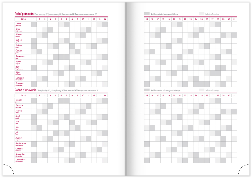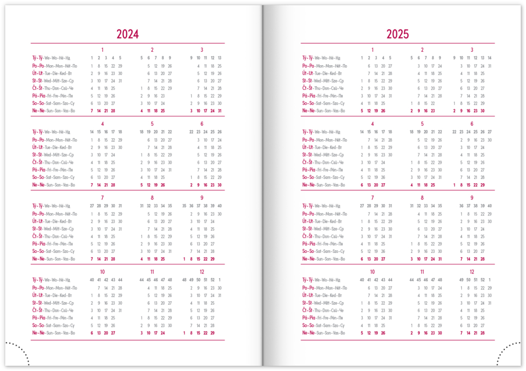 Týdenní diář Catanella 2024, fialový, 15 × 21 cm