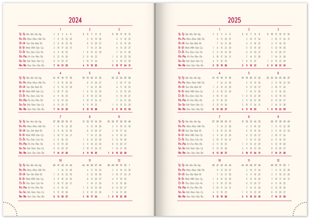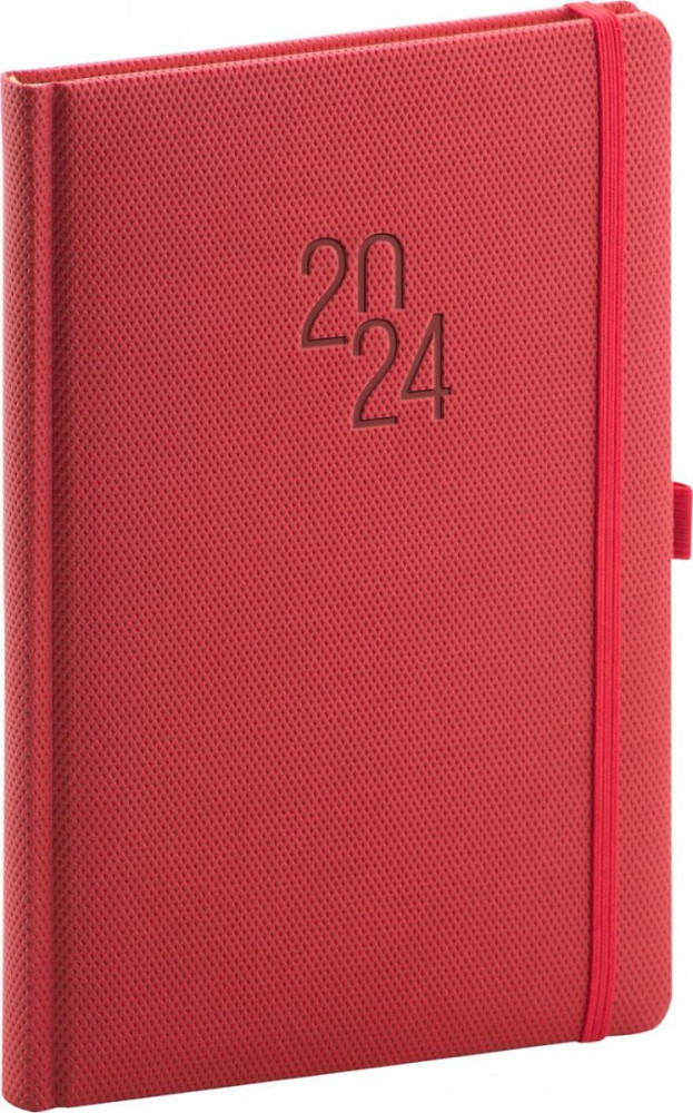 Týdenní diář Diamante 2024, červený, 15 × 21 cm