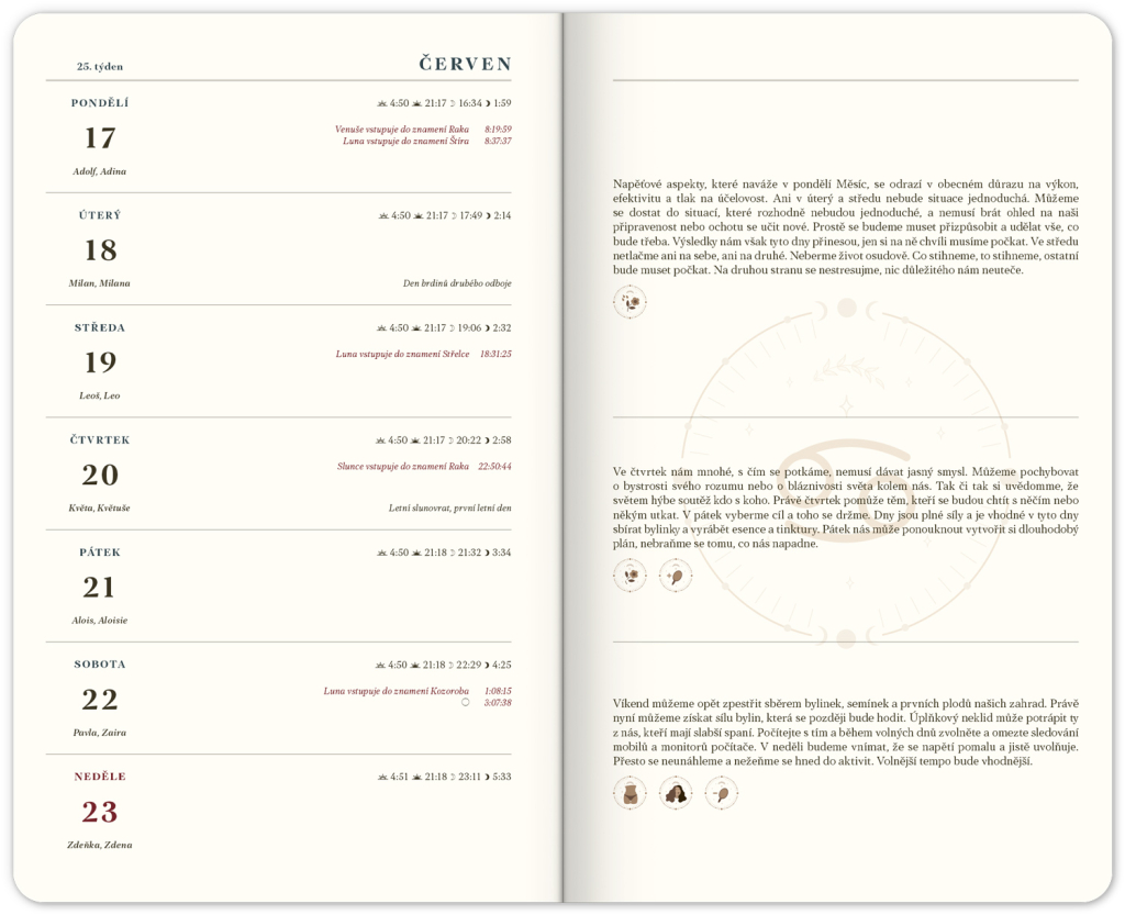 Týdenní Lunární diář 2024, 13 × 21 cm