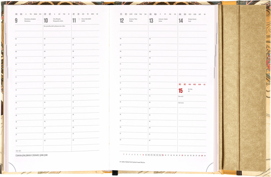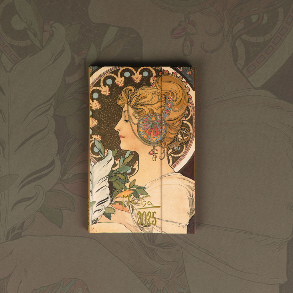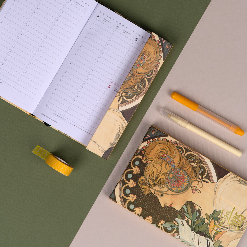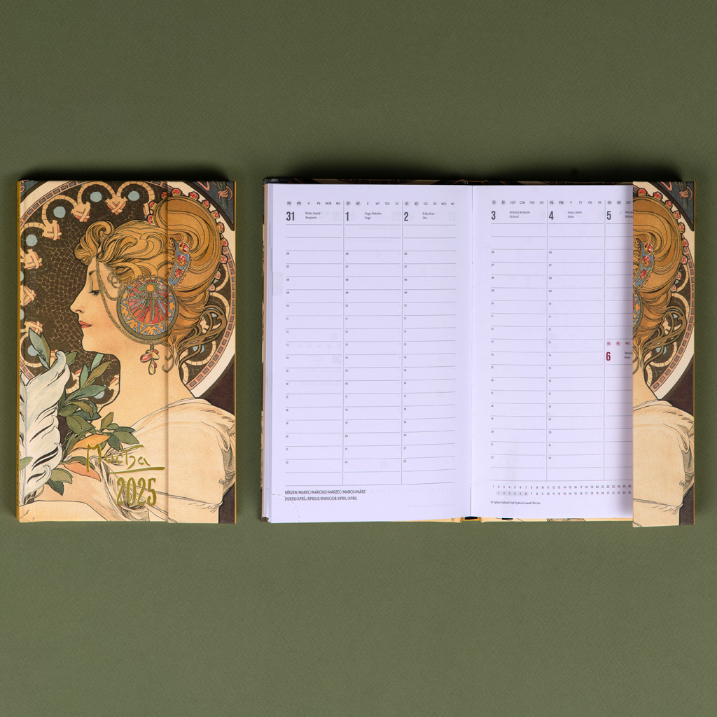 NOTIQUE Týdenní magnetický diář Alfons Mucha 2025, 13 x 21 cm