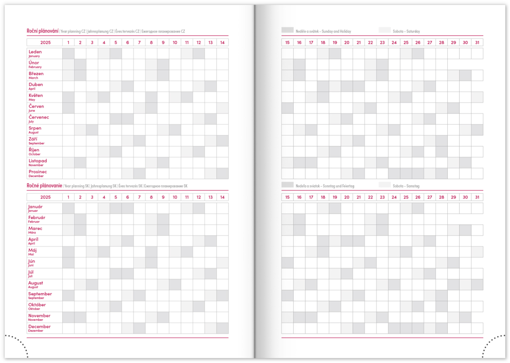 NOTIQUE Týdenní diář Aprint 2025, červený, 18 x 25 cm